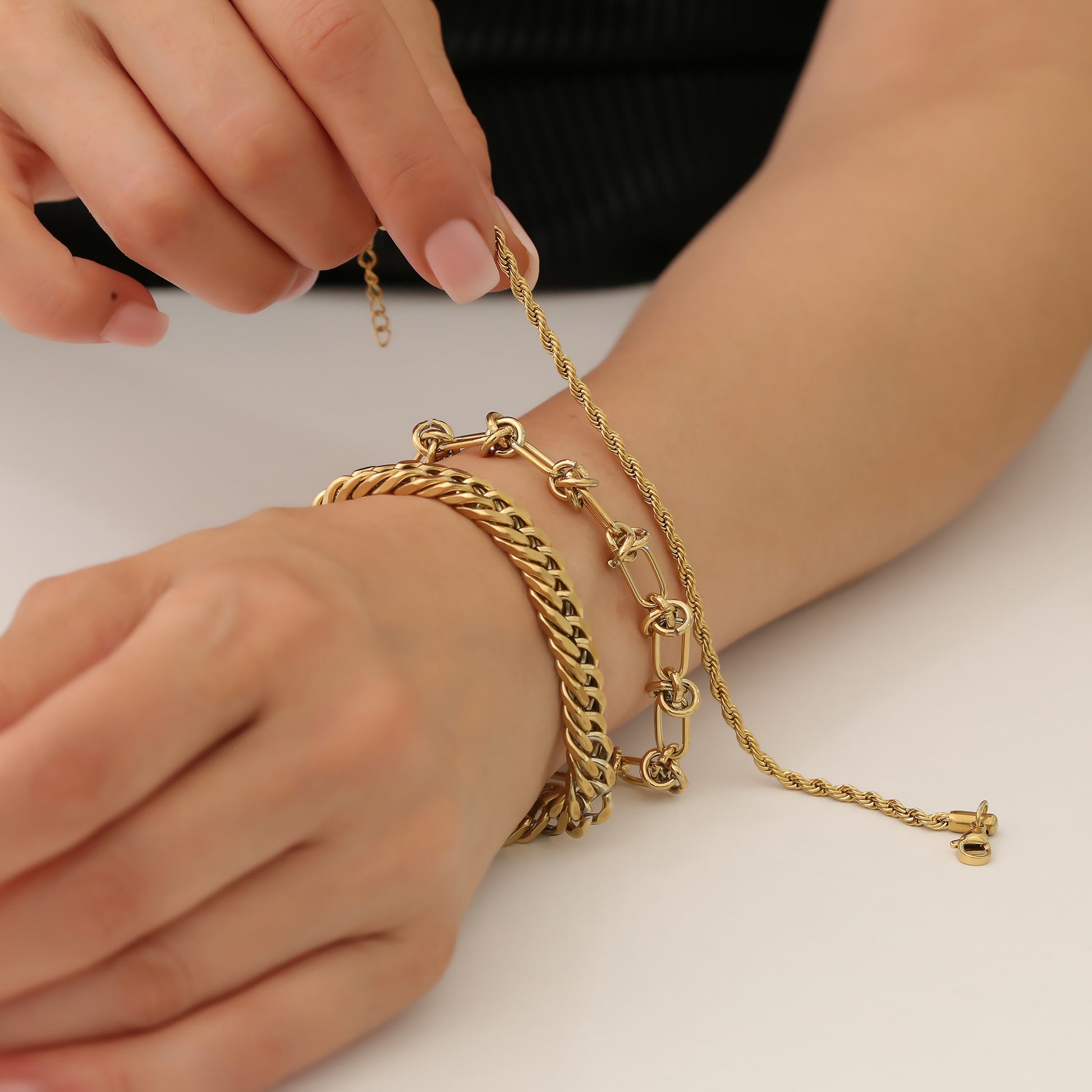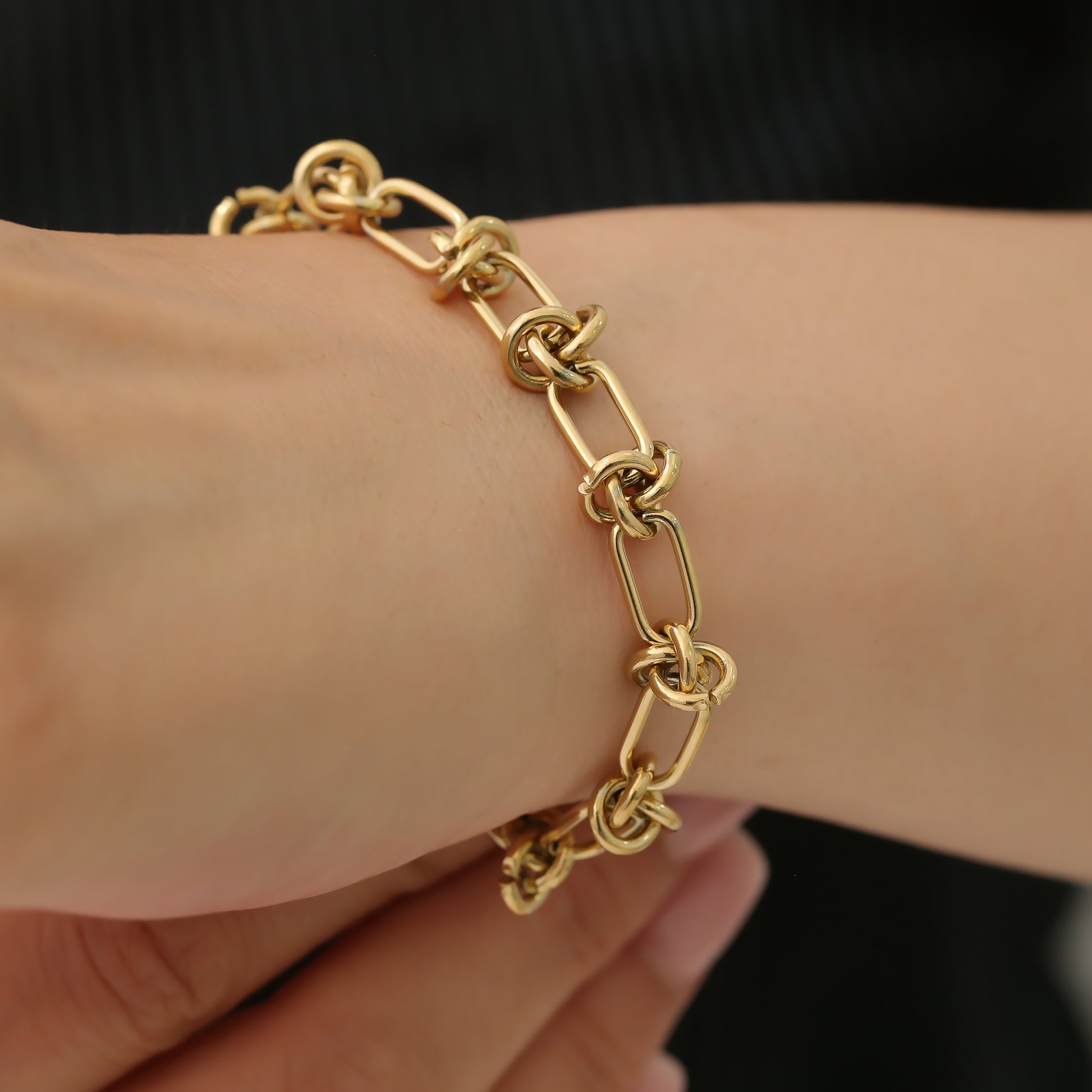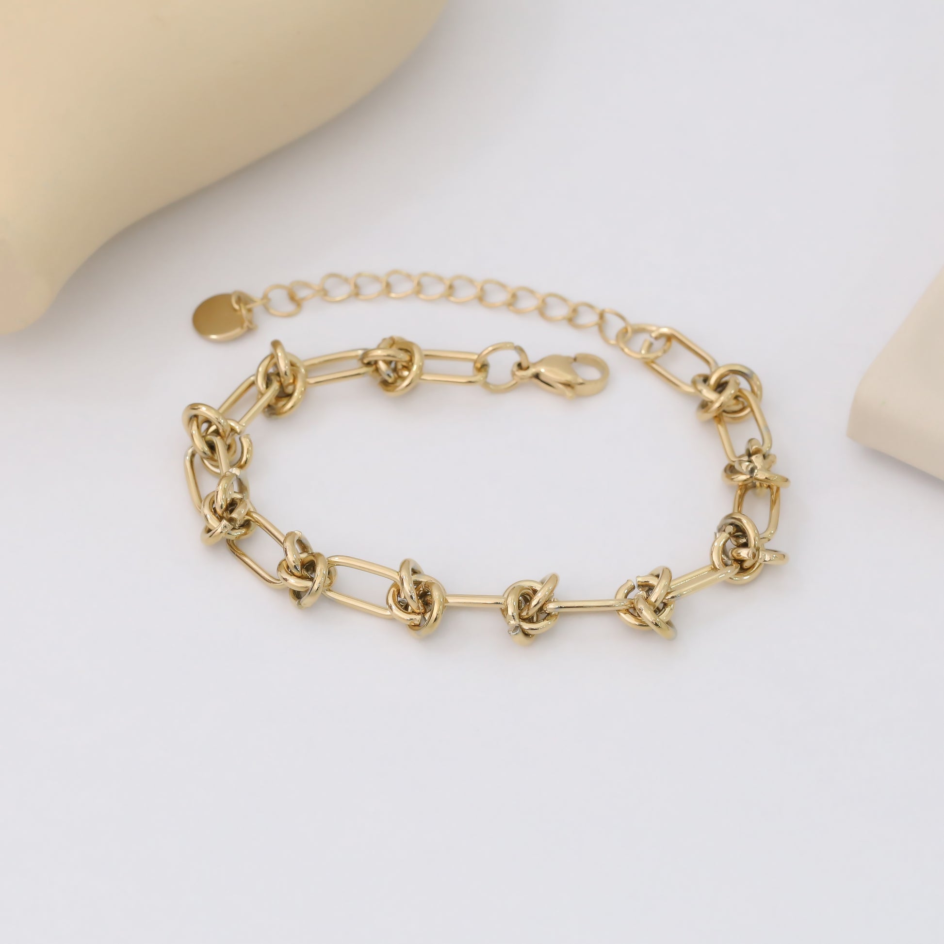 Made with a unique knot chain design, the LARISSA BRACELET is both stylish and durable. Crafted with thick materials, it offers a strong and secure fit. Elevate your look and make a statement with this eye-catching accessory