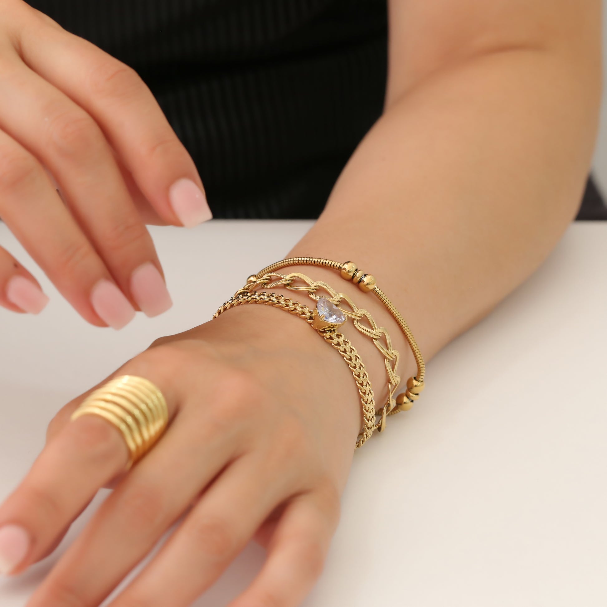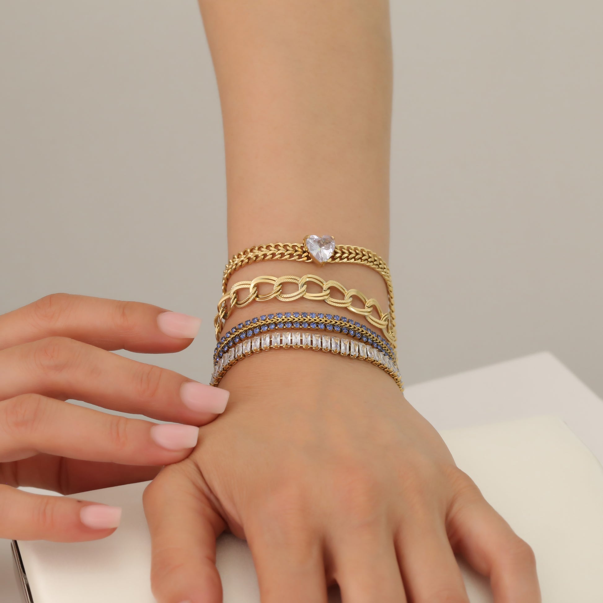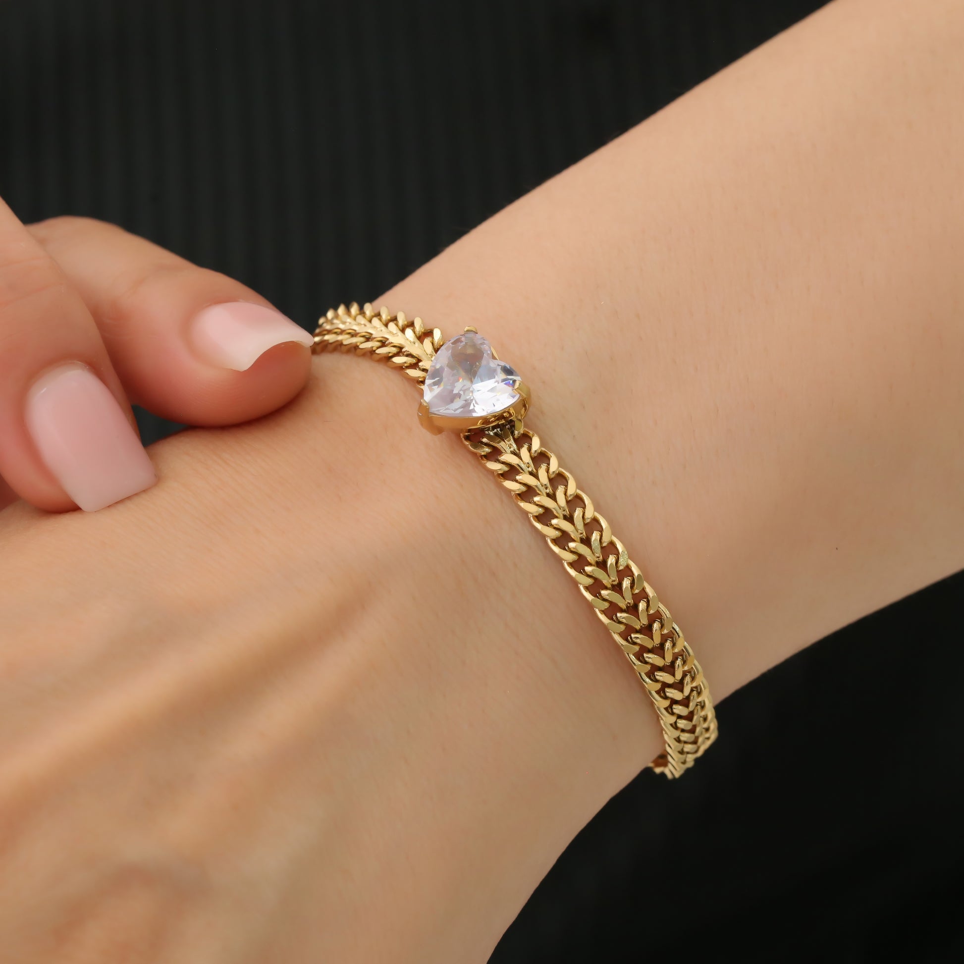 The SOPHIA BRACELET features a heart-shaped stone, making it both stylish and meaningful. Show off your unique sense of fashion and express your love with this elegant piece