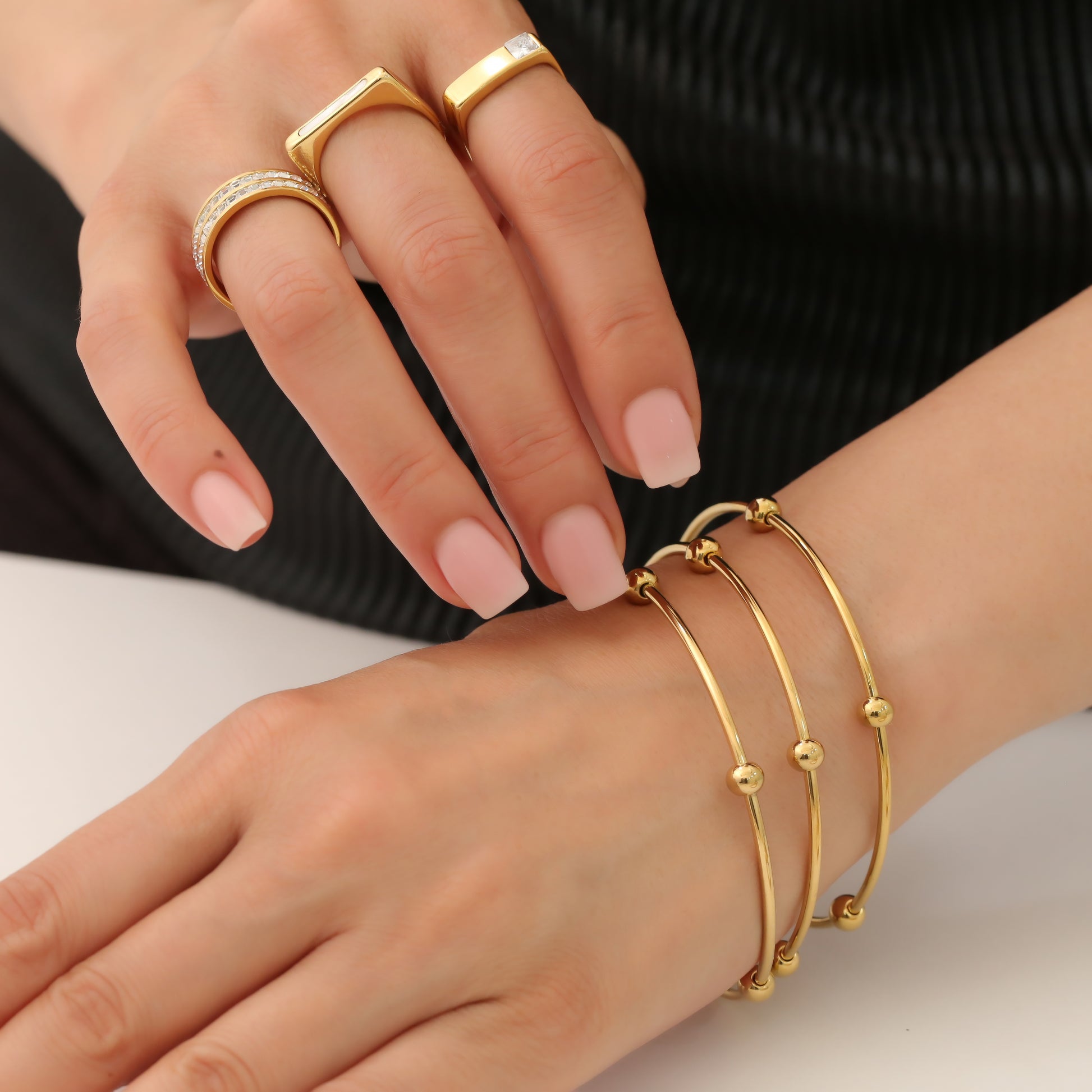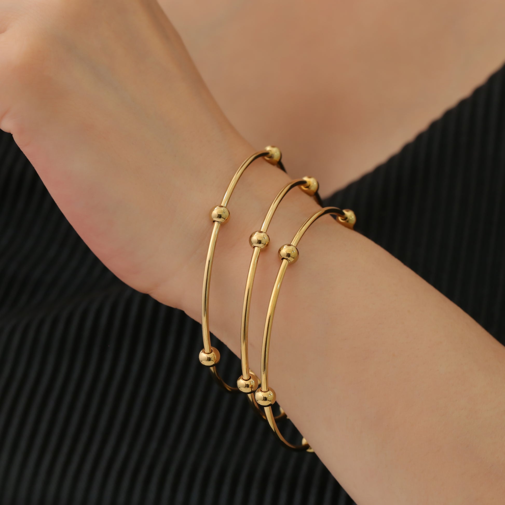 This TRISH BRACELET SET includes 3 elegant bracelets that are non-tarnish, ensuring long-lasting shine. Perfect for any occasion, these bracelets will elevate your outfit with a touch of sophistication. Each piece is carefully crafted to add a touch of luxury to your wardrobe