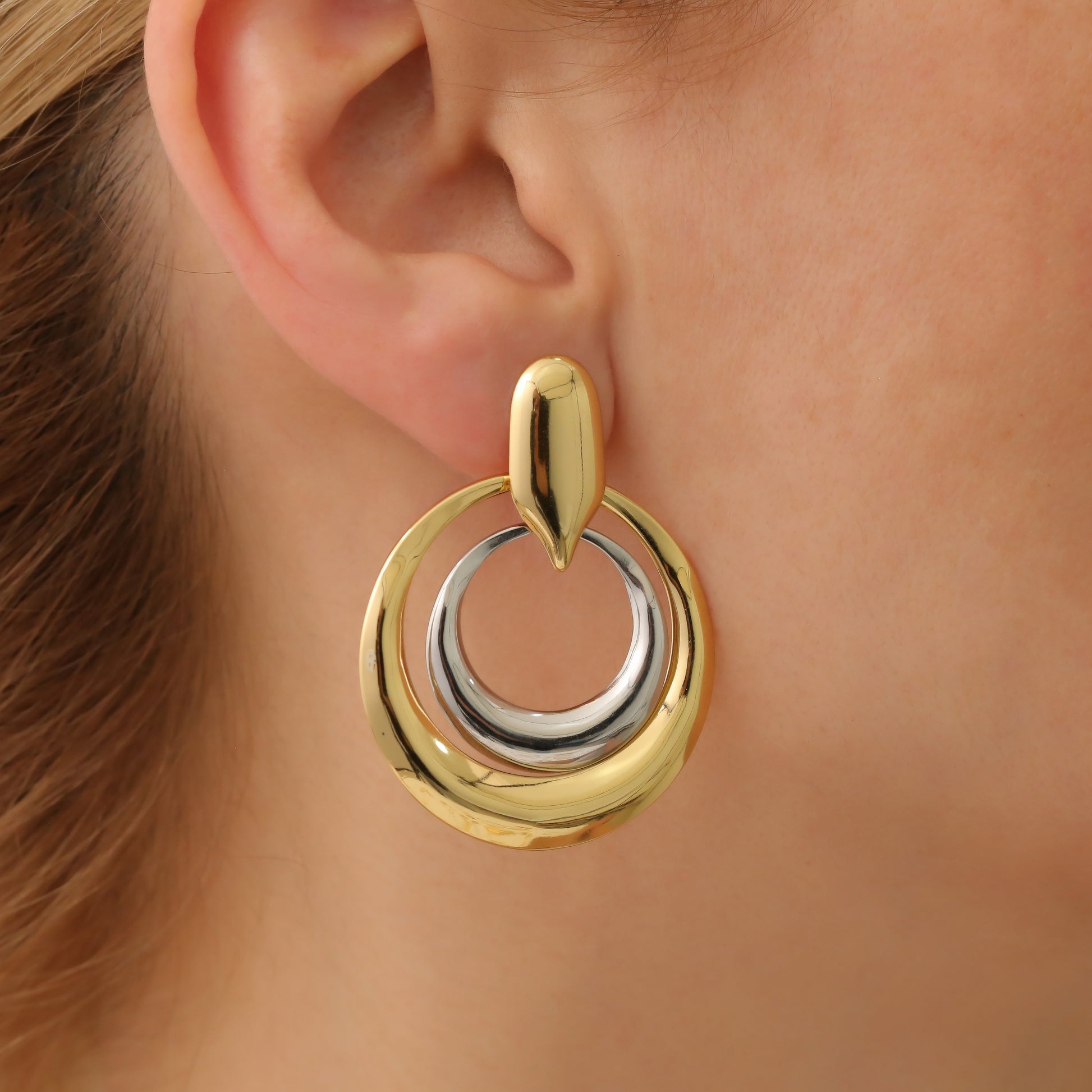 VALERIA EARRINGS - the epitome of elegance and style. These stunning earrings come in two tone colour, adding a touch of glamour to any outfit. Elevate your accessory game with confidence and grace.