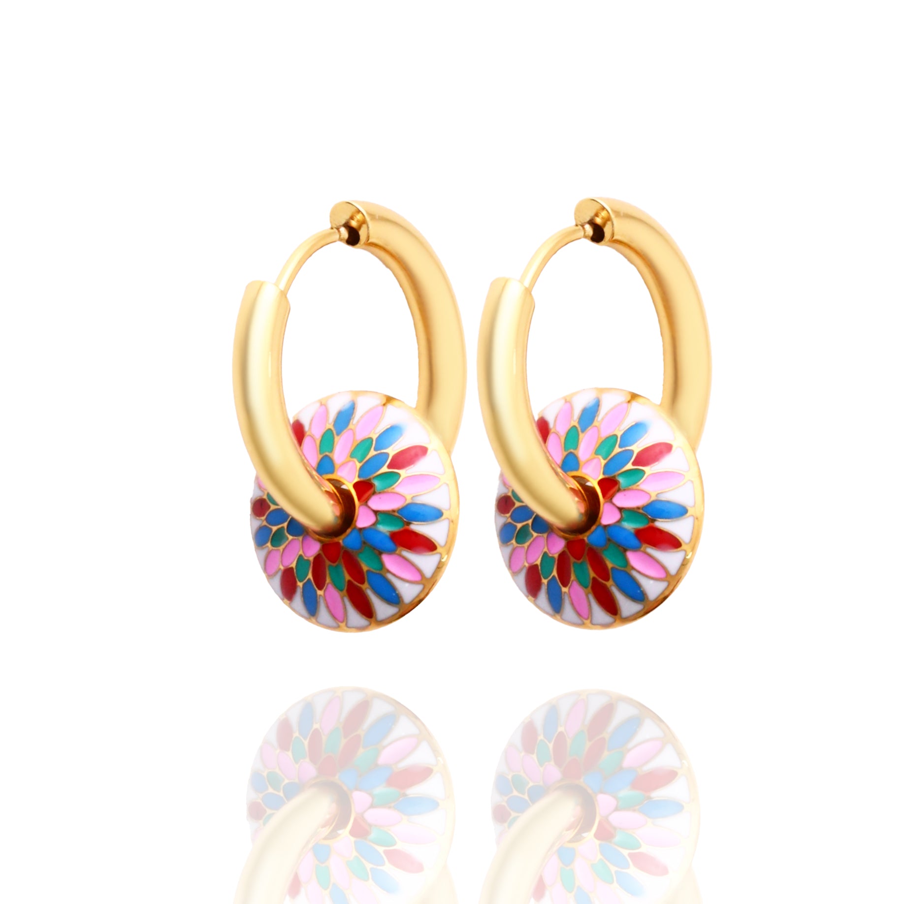 Material: Gold Plated over stainless steel Measurements : Hoop diameter : 20mm/ charm:15mm