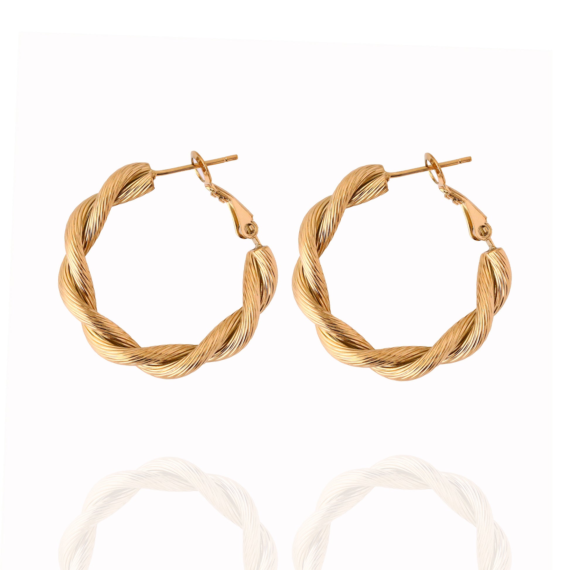 Experience timeless elegance with our EVA earrings. The twisted hoop design adds a touch of style to any outfit, and the elegant design exudes sophistication. Made with precision and quality materials, these earrings are the perfect addition to your accessory collection.