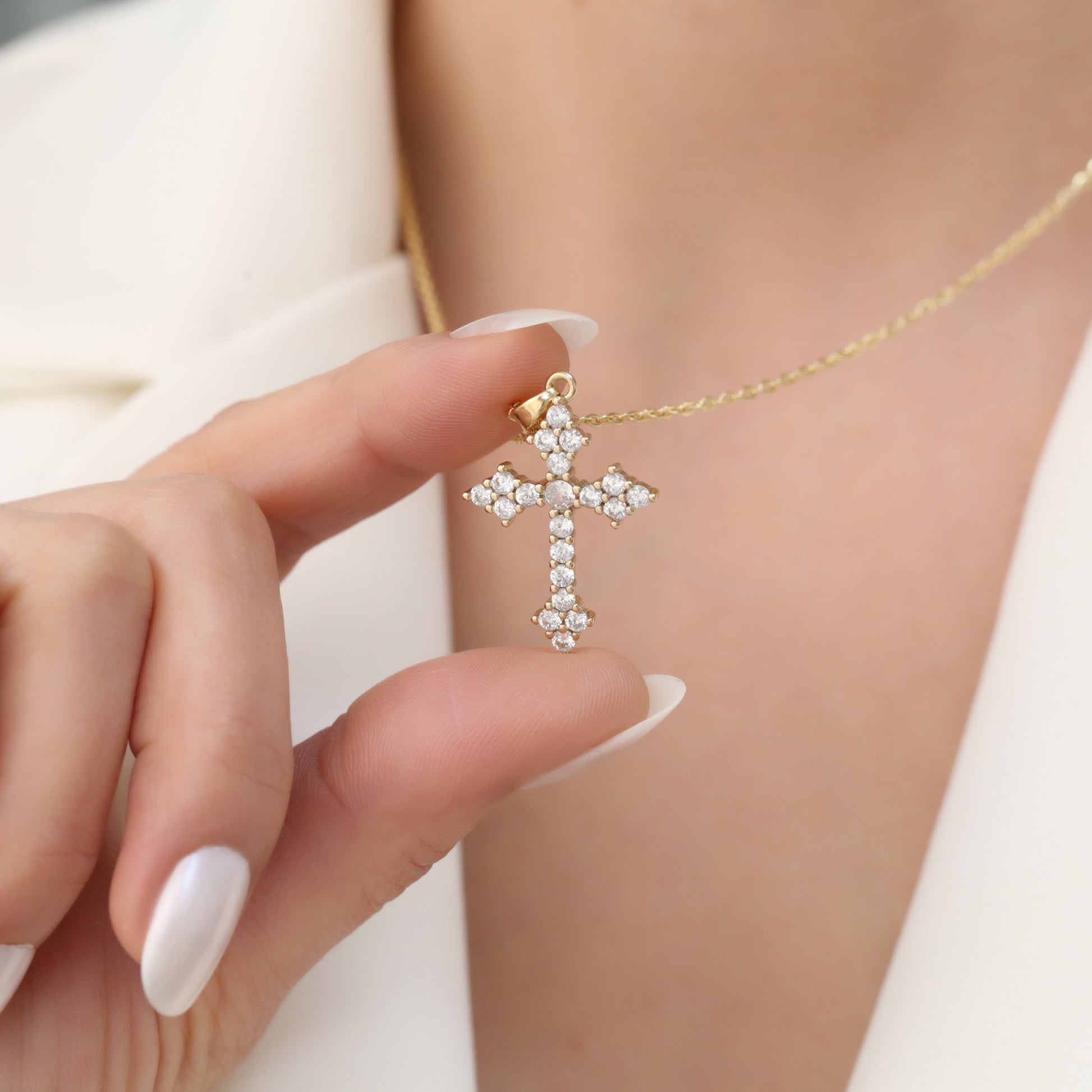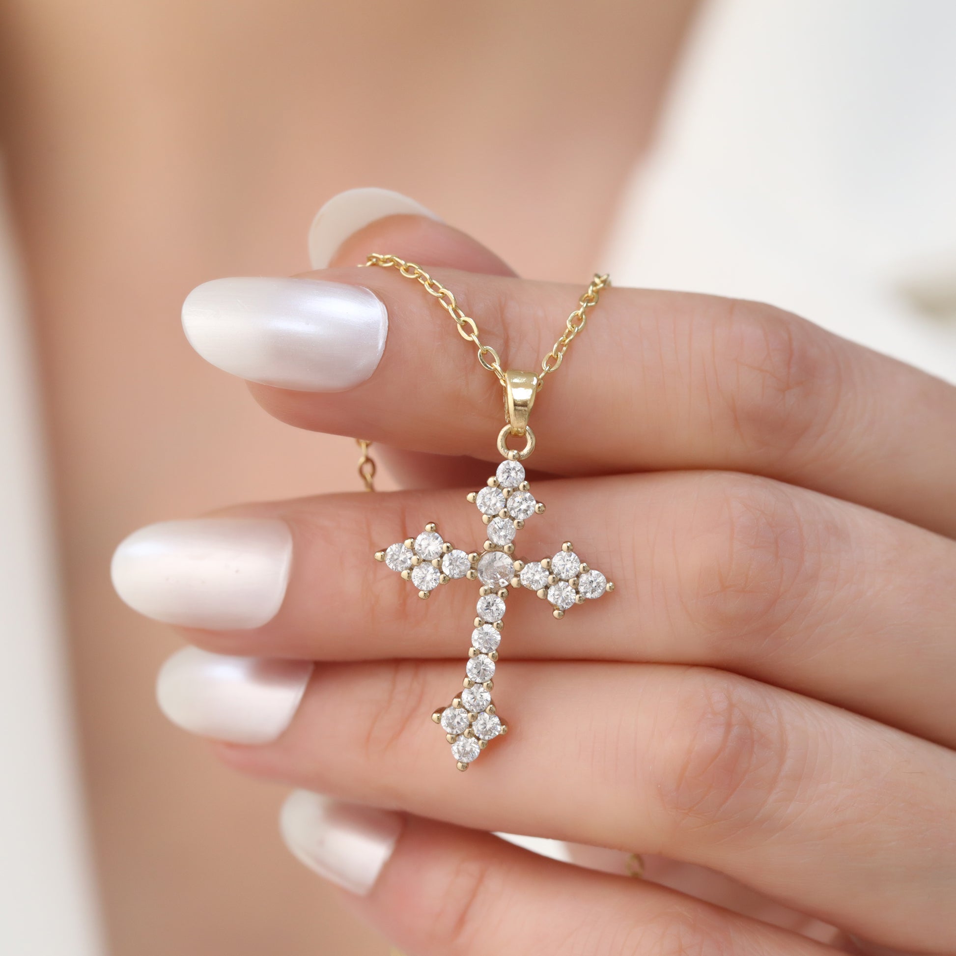 The SOFIA NECKLACE features a stunning cross pendant adorned with sparkling zirconia stones, adding a touch of elegance to any outfit. Crafted with attention to detail, this necklace is perfect for those seeking a classic yet refined look. Elevate your style with the SOFIA NECKLACE