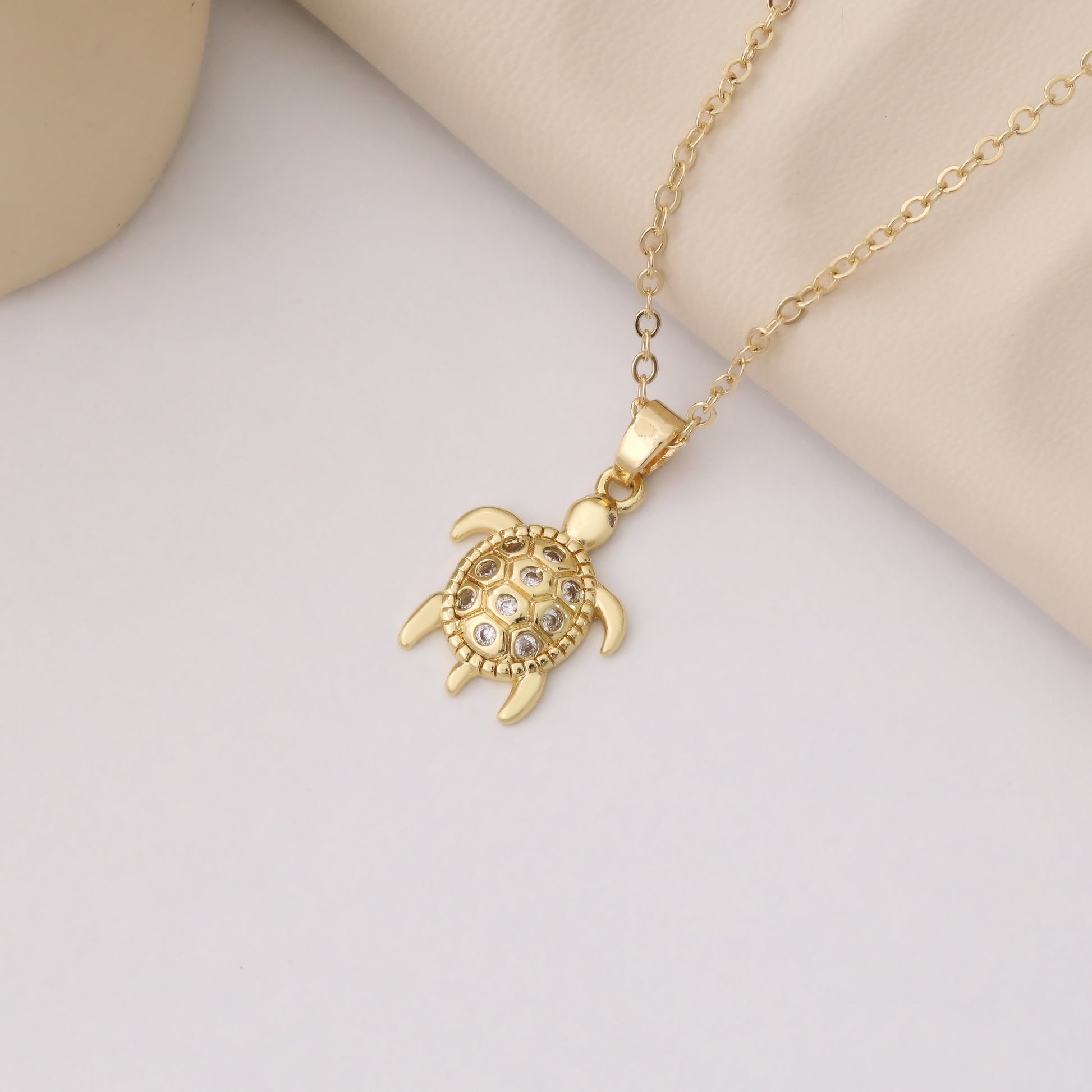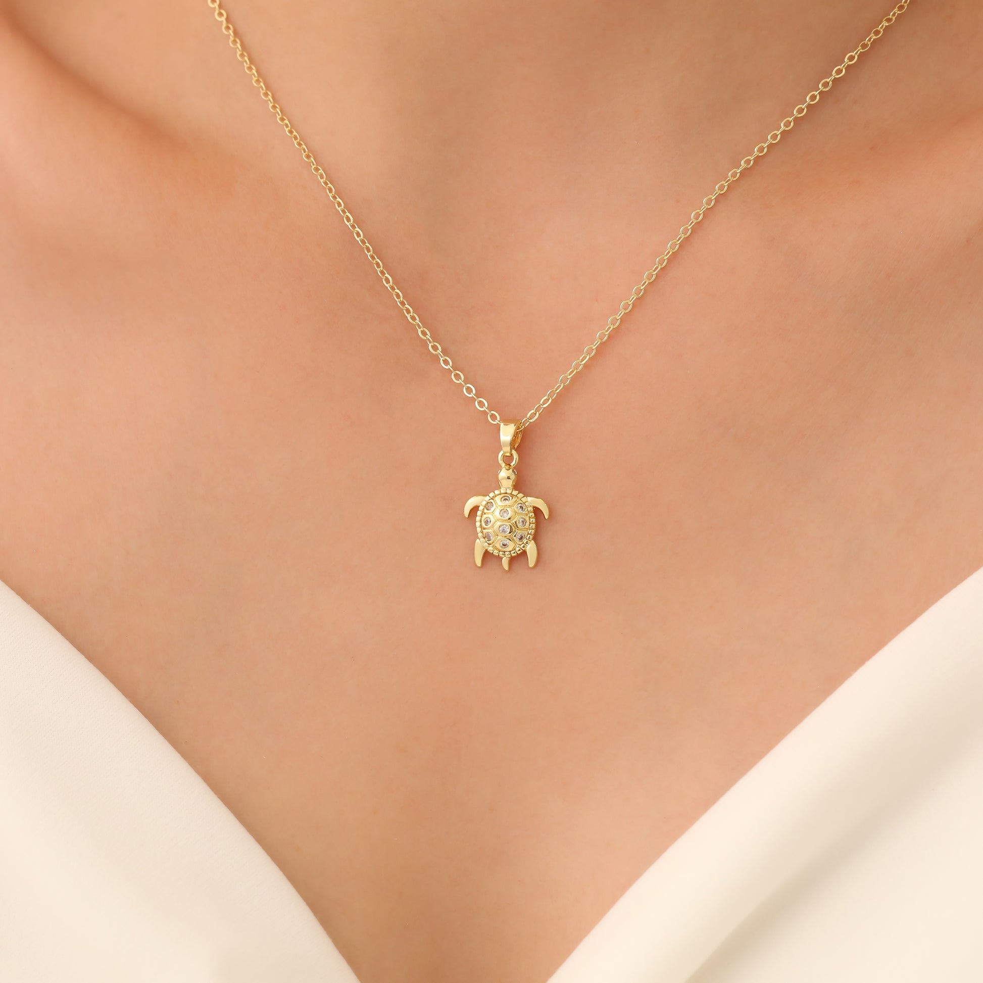 The OCEAN NECKLACE features a stunning turtle pendant adorned with sparkling zirconia stones. Add a touch of elegance and sophistication to any outfit with this eye-catching accessory. With its unique design and high-quality materials, this necklace is the perfect addition to your jewelry collection.