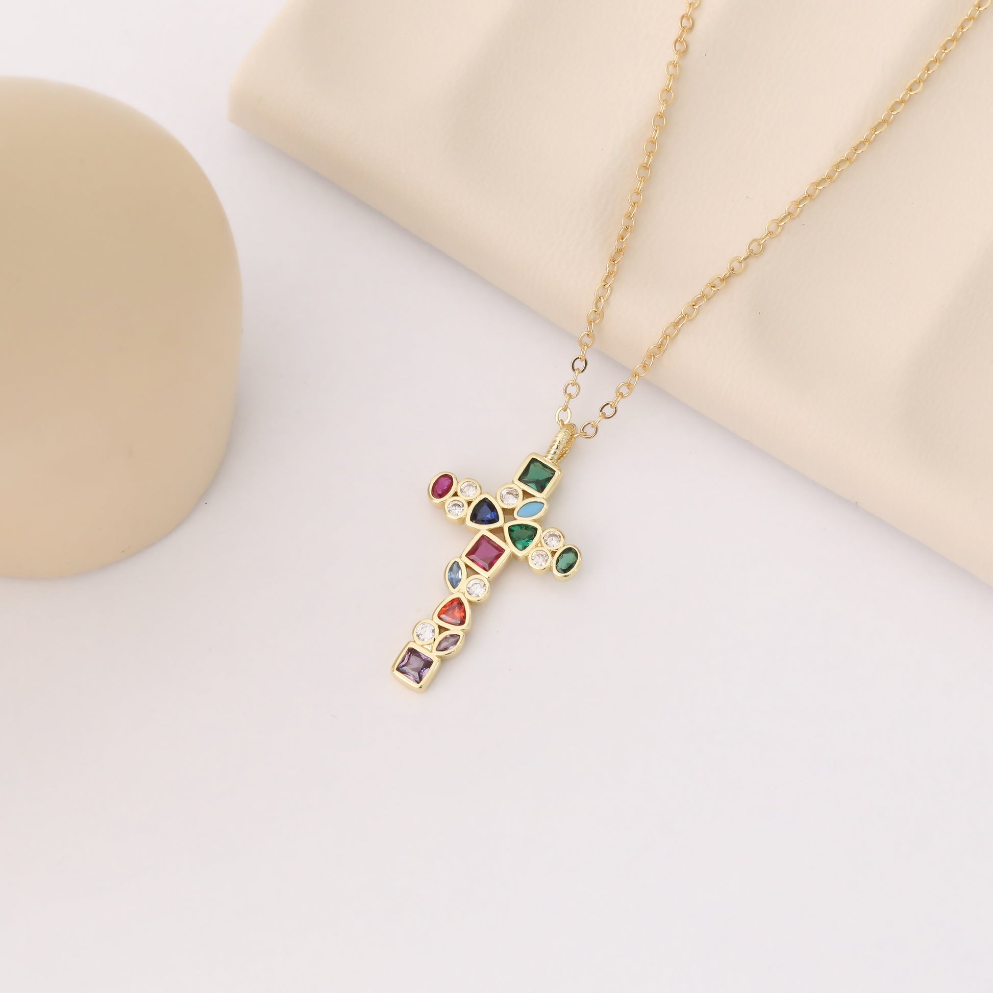This Giselle necklace features a unique cross pendant design and vibrant zirconia stones. Elevate any outfit with its eye-catching and stylish flair. Made with quality materials, this necklace is perfect for any fashion-forward individual.