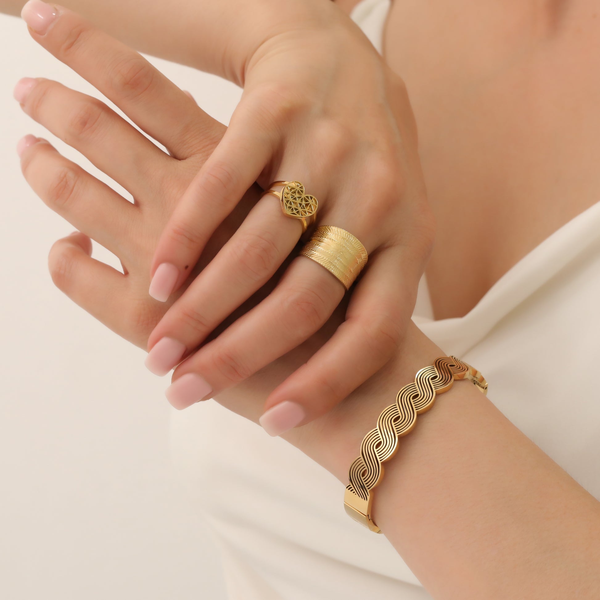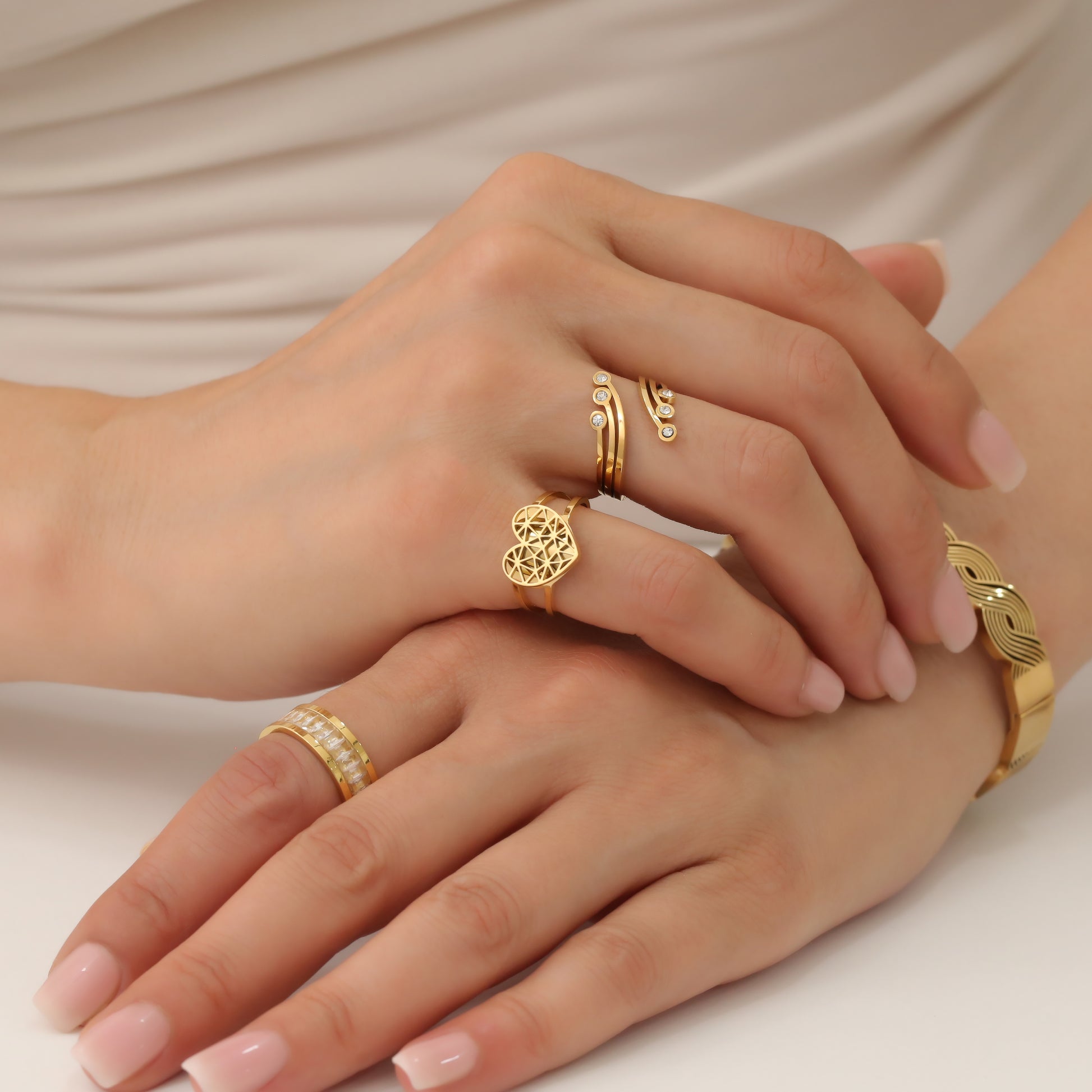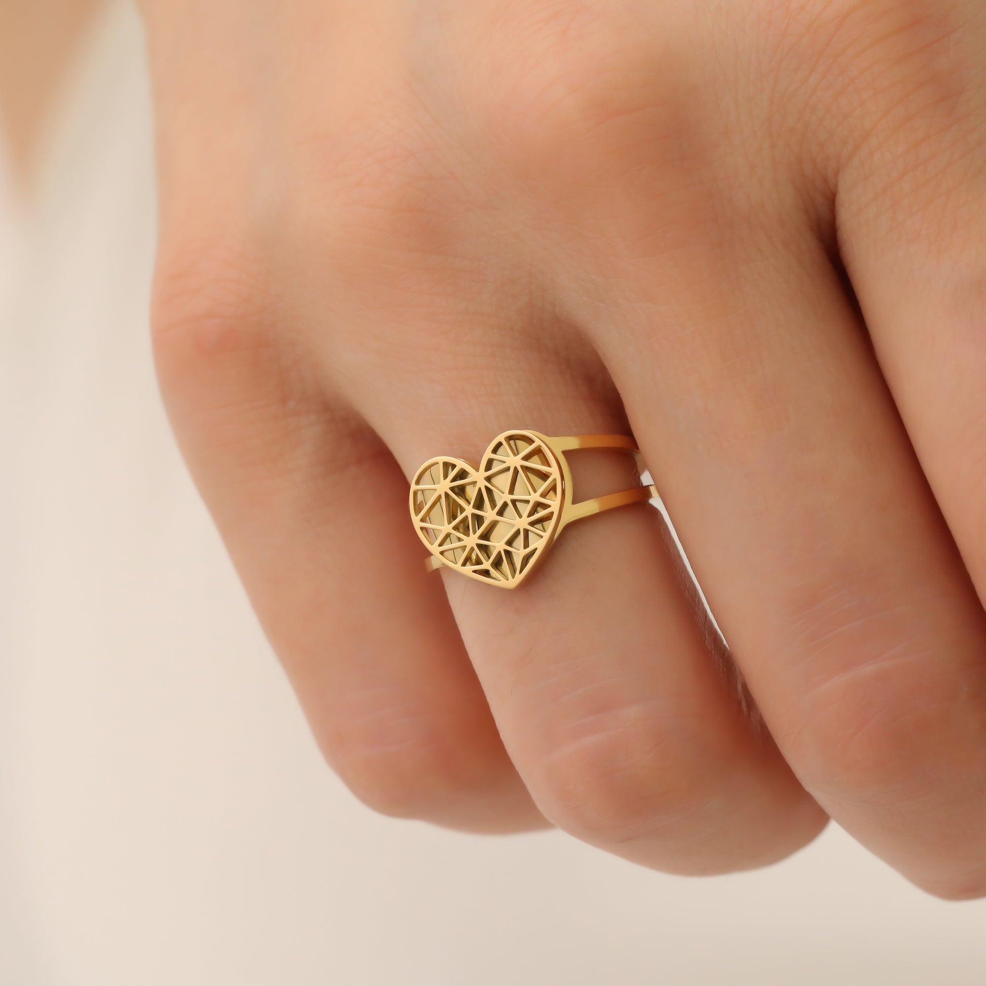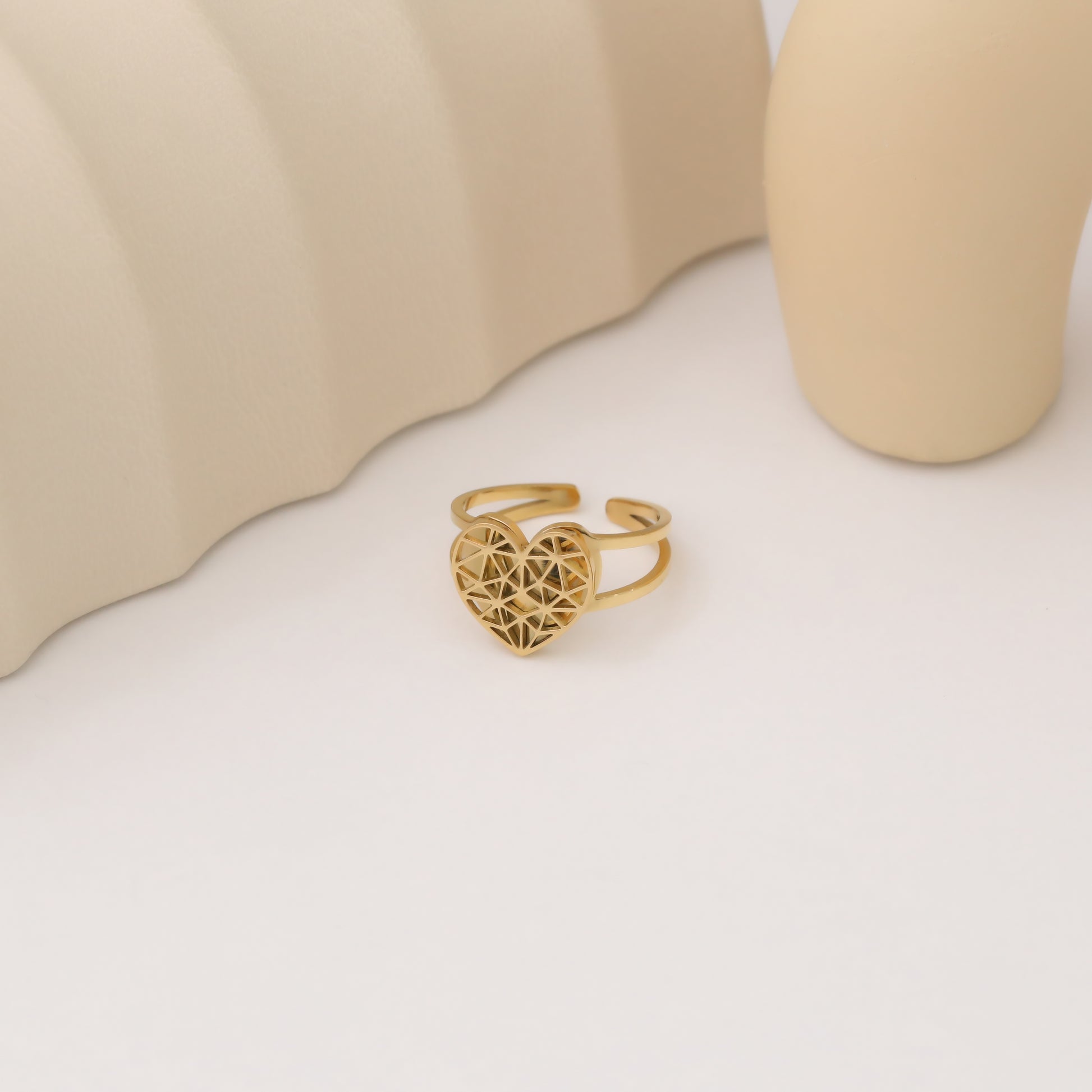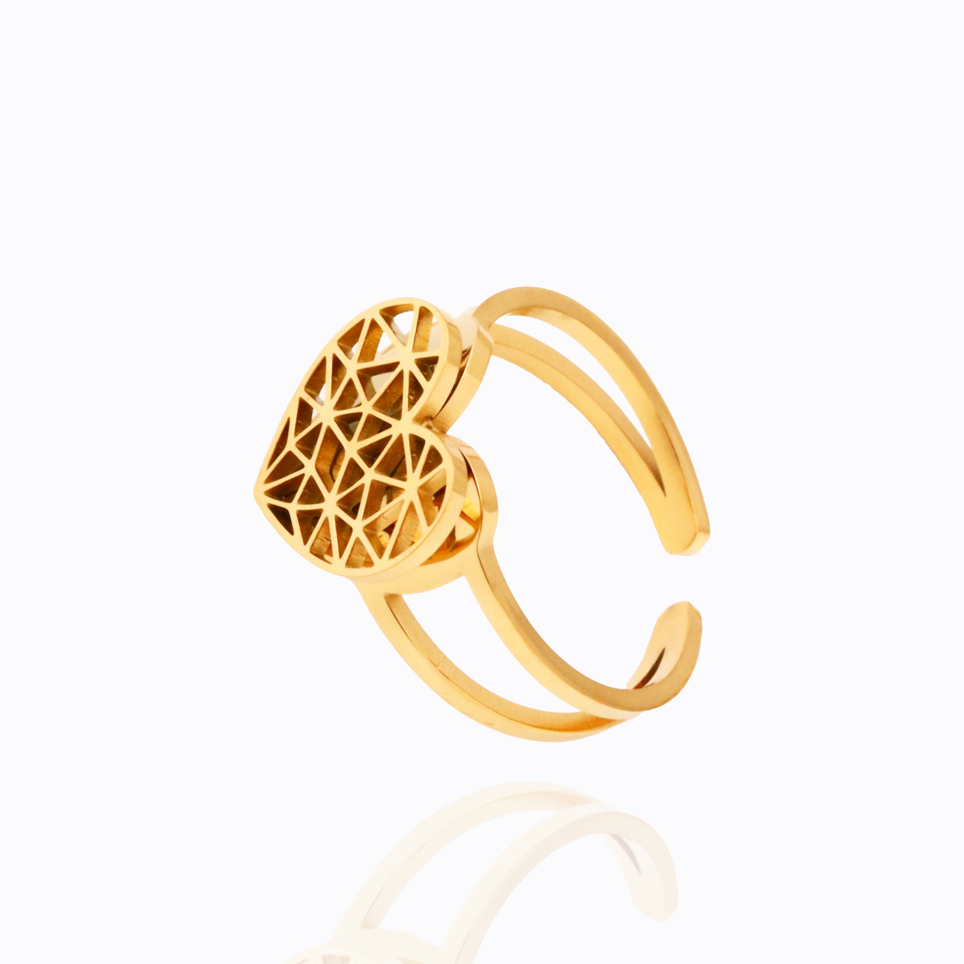 The MIRANDA RING features a heart shape and unique design, exuding elegance and individuality. Crafted with precision, this exquisite piece is sure to make a statement. Show your love and style with this must-have accessory
