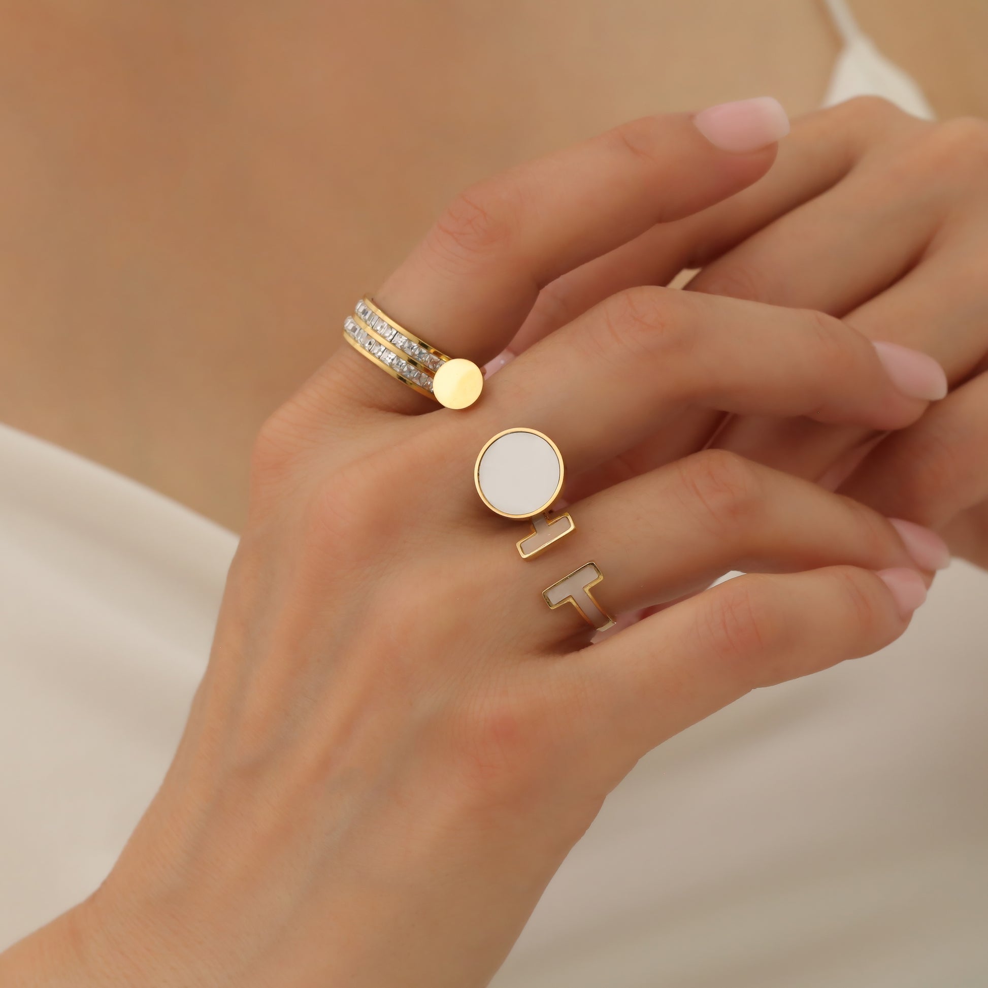 The VERONA RING is a perfect combination of style and durability. Made from Mother of Pearl, this ring is both elegant and non-tarnishing. Add a chic touch to your wardrobe with this timeless piec