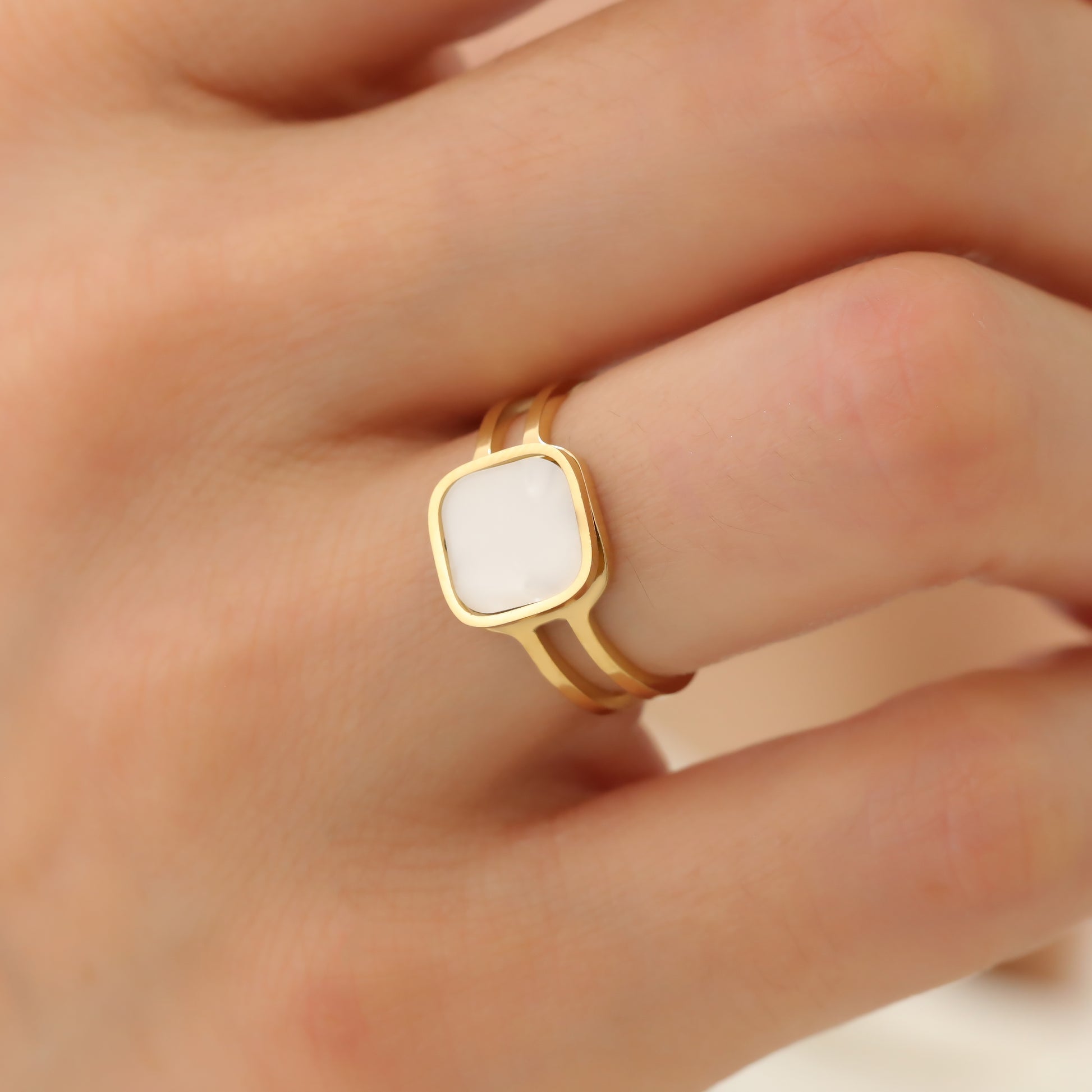 KALIYAH RING - crafted with lustrous mother of pearl and designed to never tarnish. Elevate your style with this chic and stylish accessory that will continue to shine for years to come. An essential addition to any jewelry collection
